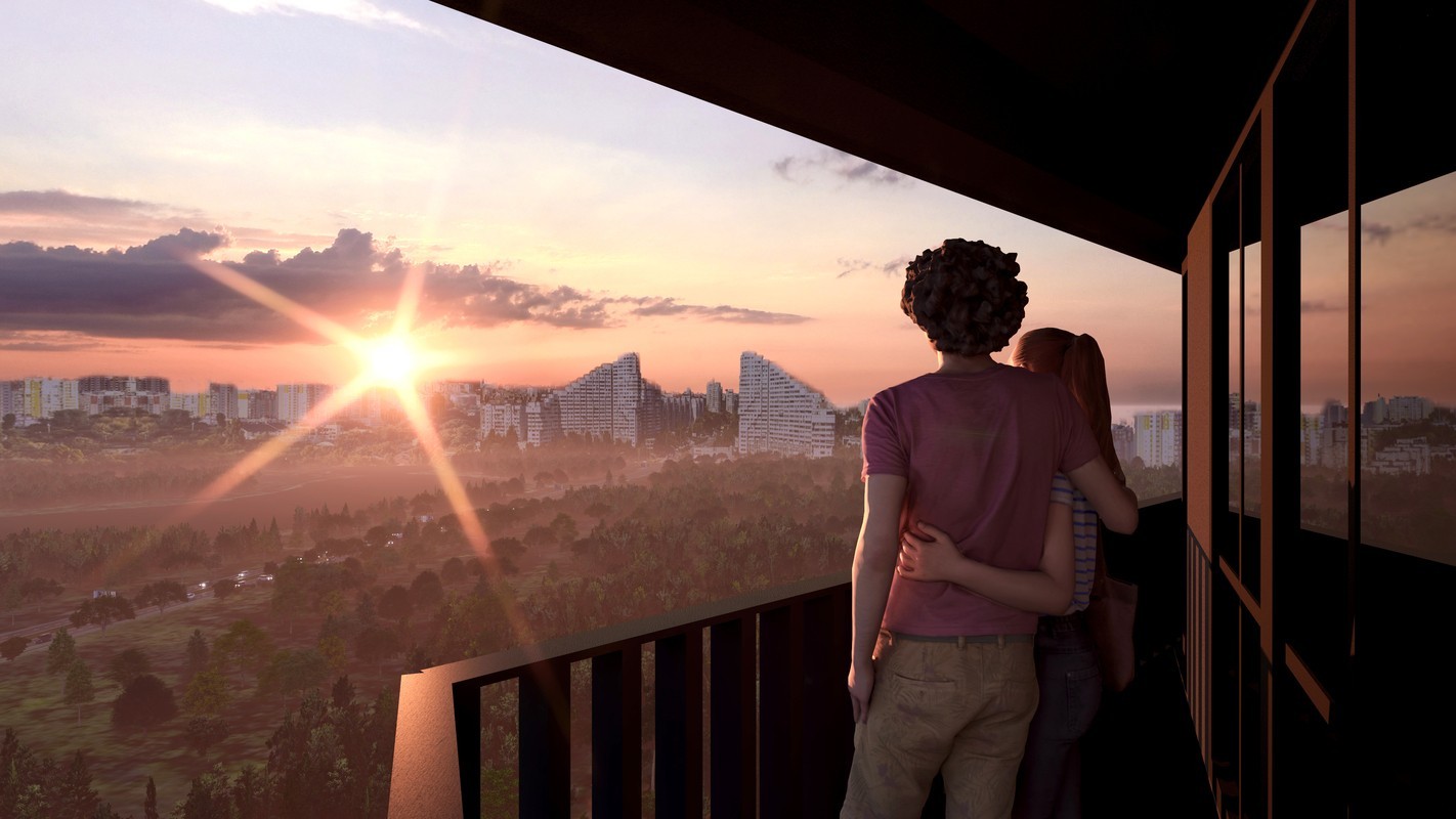 În interior, apartamentele sunt proiectate ergonomic, cu compartimentări flexibile și balcoane deschise care prelungesc spațiul de locuit către lumină și aer.
